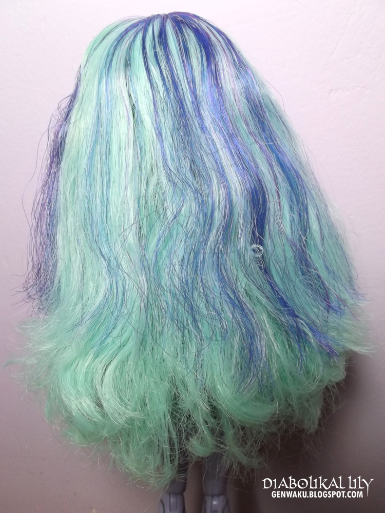 Su pelo es un asco. Cuando saqué la muñeca de la caja, lo tenía todo enredado y tuve que cepillarlo. Aún así, el resultado no fue bueno y voy a tener que darle un agua para quitarle la porquería que tiene en el pelo y arreglarle el peinado. Detesto cómo embalan las muñecas, dejándoles el pelo tan asqueroso y feo. Eso sí, su pelo es suave y abundante.